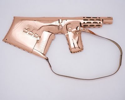 I love these handbags!! I guess that's partially due to my somewhat aggressive personality. LOL I can't even remember how I came across James Piatt's site, but I'm always on the hunt for new and interesting accessories and obviously he's no exception. His work is very interesting and will definitely turn heads....and hopefully won't get you arrested. I'm going with the copper color personally, so I won't "accidentally" be gunned down by the NYPD. Umm...anyway....check out a few of my favorite designs below. You can learn more about the designer and see more of his bags on his website